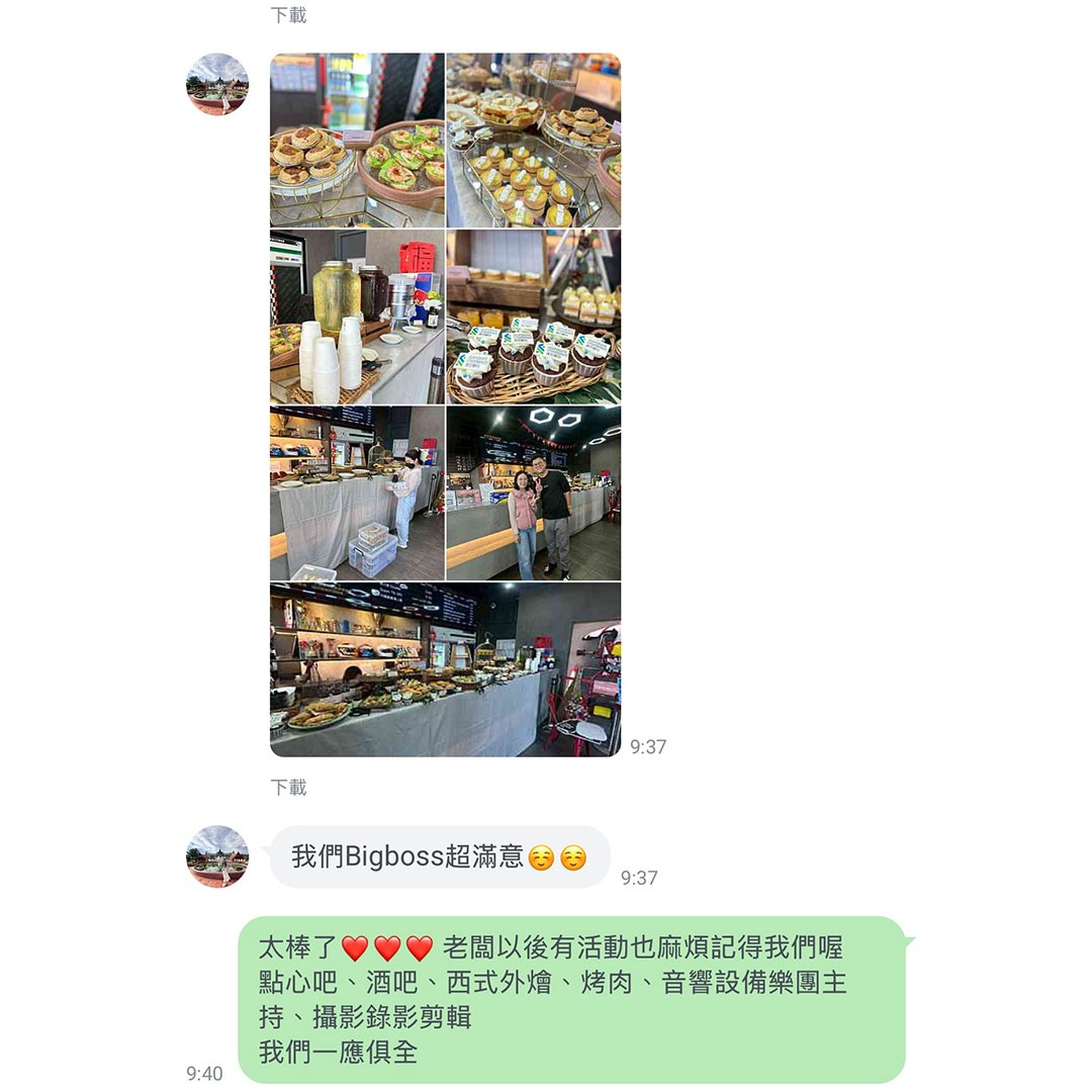 整合行動酒吧、燈光音響、樂團表演、攝影/錄影、佈置及設備租借、甜點吧、BBQ代烤、私廚外燴、場地推薦等,以「客製化組合」滿足不同活動需求。